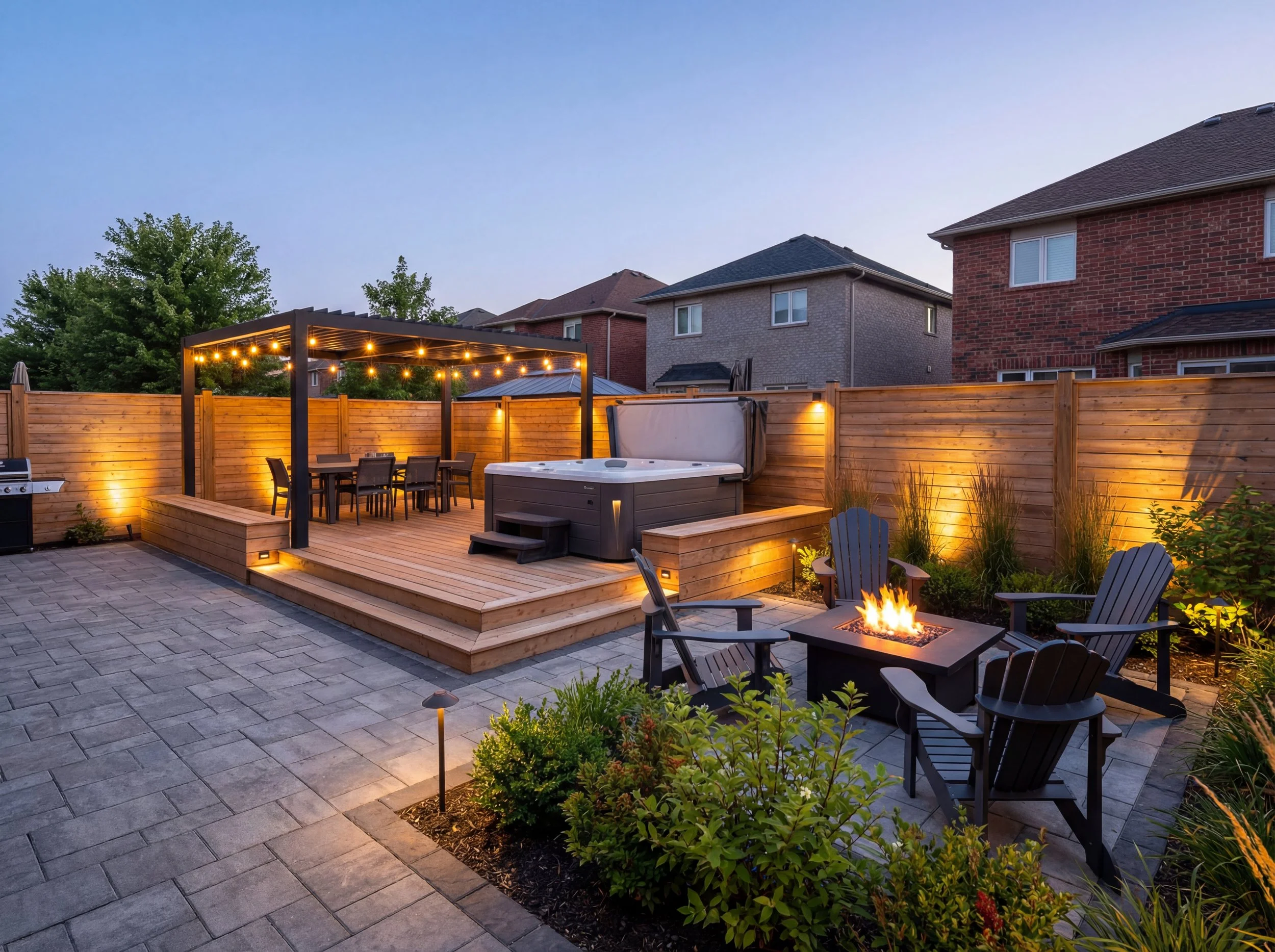 Maximize your home's footprint with a custom outdoor living space. From integrated hot tubs and multi-level cedar decking to fire pit lounges and ambient-lit pergolas, we design and build functional retreats. Our focus on durable materials ensures a year-round entertainment hub that balances aesthetic appeal with the practical demands of the Canadian climate.